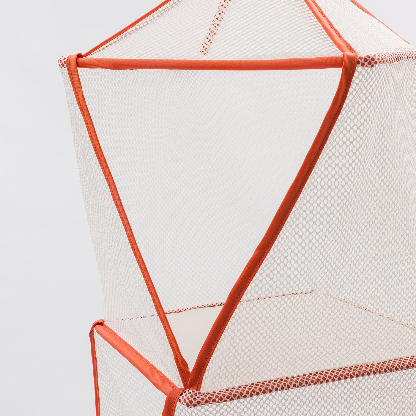 The energetic orange outlines add pop of colour and cheerful vibe to the room, making organizing fun for children.