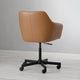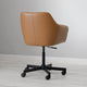 Swivel chair with soft shapes and nice padding. Upholstered in durable leather that blends well in all types of rooms – and with castors that make it easy to move.