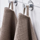 Made of cotton/viscose, this light grey/brown, waffle-textured towel is absorbent and quick drying. The fringe edging adds a touch of playfulness.