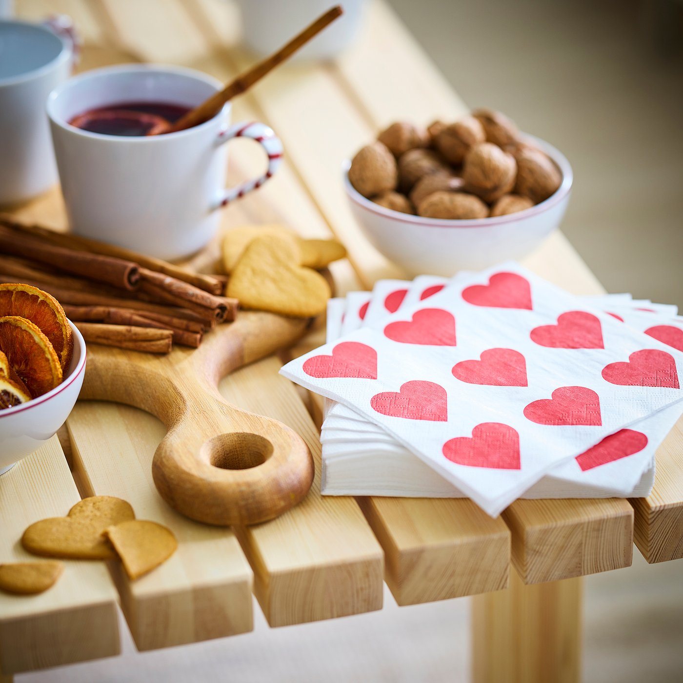 VINTERFINT paper napkin, heart white/red, 33x33 cm