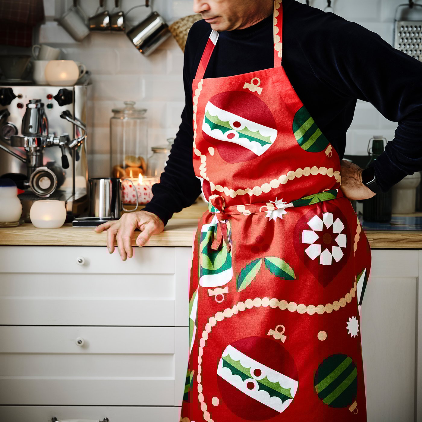 VINTERFINT pre-cut fabric, Christmas bauble patterned red, 300x150 cm