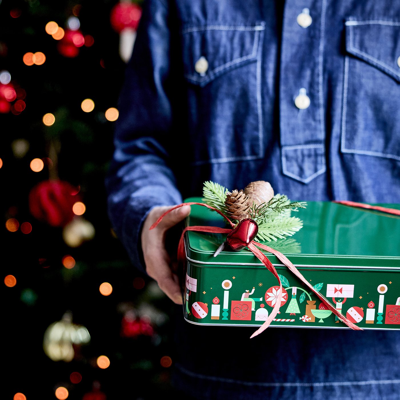 This Christmassy tin takes care of cookies, candy and small things. Perfect to fill with something tasty and bring as a going-away gift.