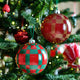 Big Christmas tree baubles make the tree extra eye-catching – or make decorative eye-catchers in the window. Evelina Kroon's checkered pattern is found on several other items in the VINTERFINT collection.