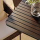 - The acacia wooden slats create a warm tone. Together with the plastic rattan legs they give the table a unique and elegant expression.