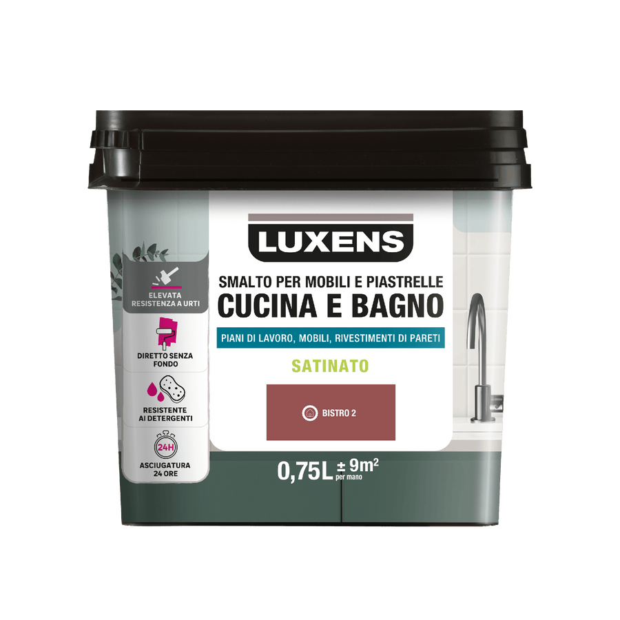 WATER GLAZE FOR FURNITURE AND TILES KITCHEN AND BATHROOM RED BISTRO 2 SATIN LUXENS 750 MLIficial for giving a new look to kitchen or bathroom surfaces without changing everythingResistant to cleaning and hygiene products (soap, shower gel.).Applies directly without primer